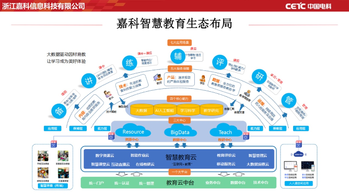 目前,教育信息化浪潮席卷全國。“雙減”政策的出臺更是將家校聯(lián)通的重要性提高到了新的高度。校園信息化的部署顯得尤為重要。中國電科嘉科信息打造的智慧教育方案,通過“一個平臺”“兩個中心”“三大核心能力”“四大服務體系”,提供“七大應用場景”服務。